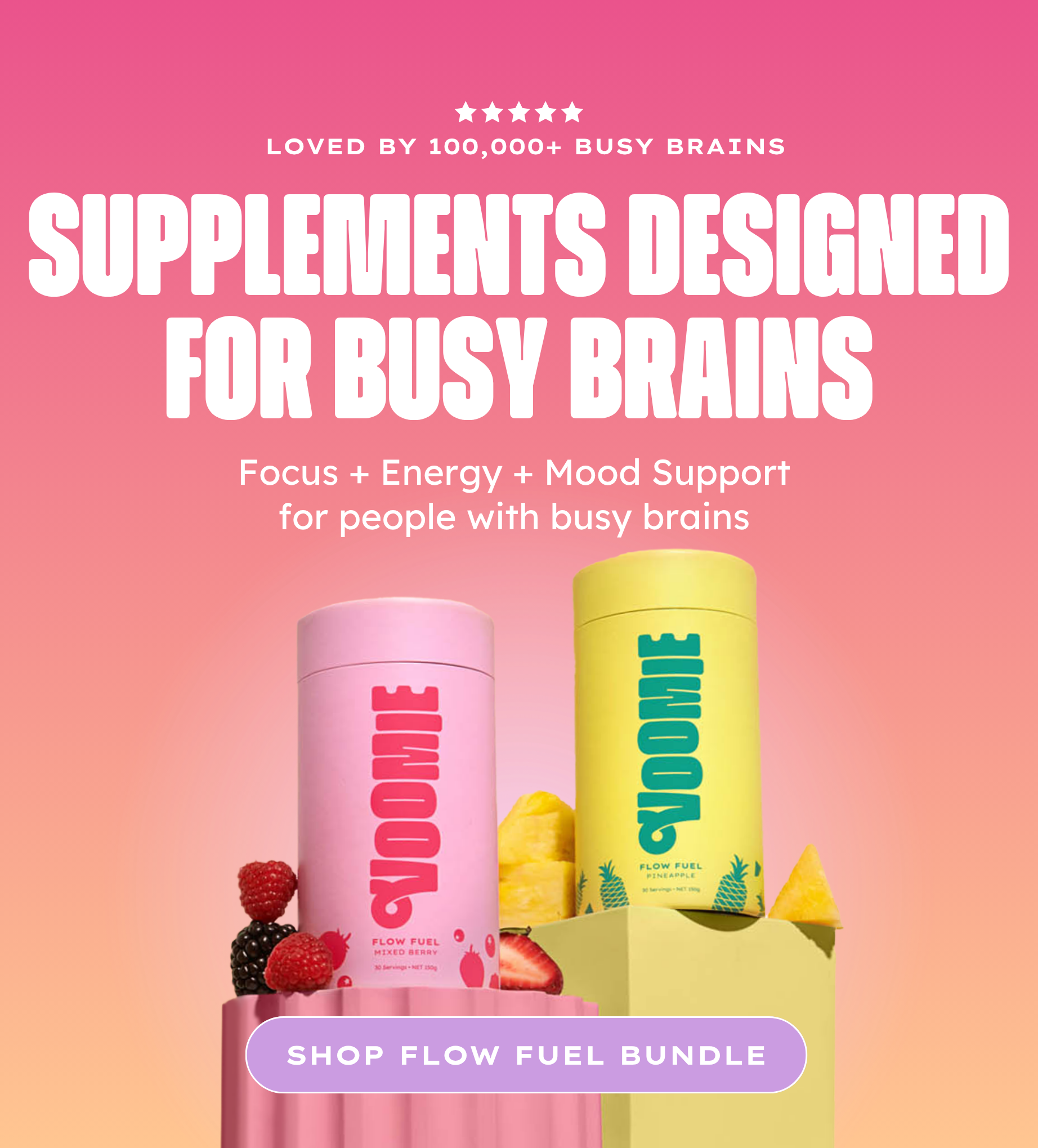 Voomie is the first of its kind. We create supplements for people with busy brains. Our supplements are designed to help people manage their busy brain naturally. Made by people just like you!