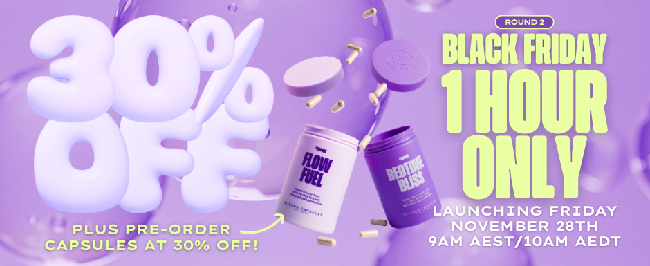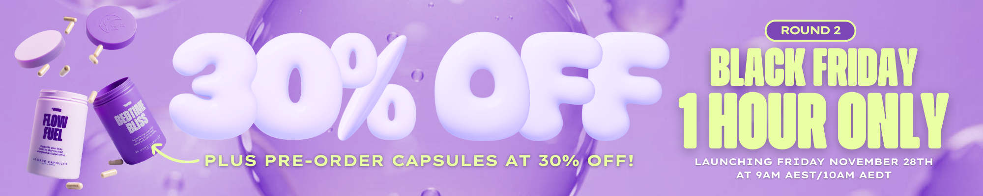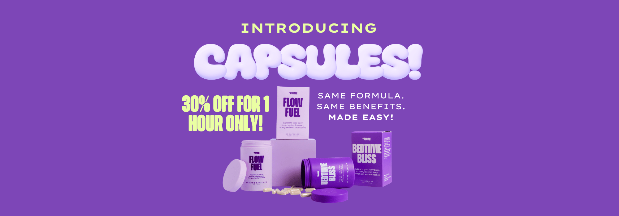 What: 30% off SITEWIDE for 60 minutes including our NEW Flow Fuel and Bedtime Bliss Capsules!