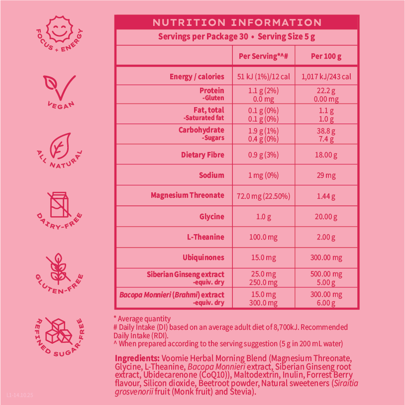 Our Voomie products are crafted with adaptability in mind! We understand that taste is subjective so we've designed our formula to be versatile, allowing you to personalise your drink with flavourings such as juices, milk, or other ingredients to match your unique taste. We encourage you to experiment with our products, knowing that everyone's palate is different. For more information, please read here.